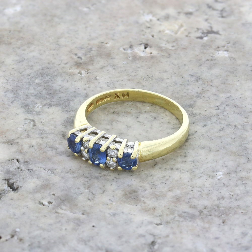 Pre Owned 18ct Yellow Gold Sapphire And 0.10cts Diamond Dress Ring