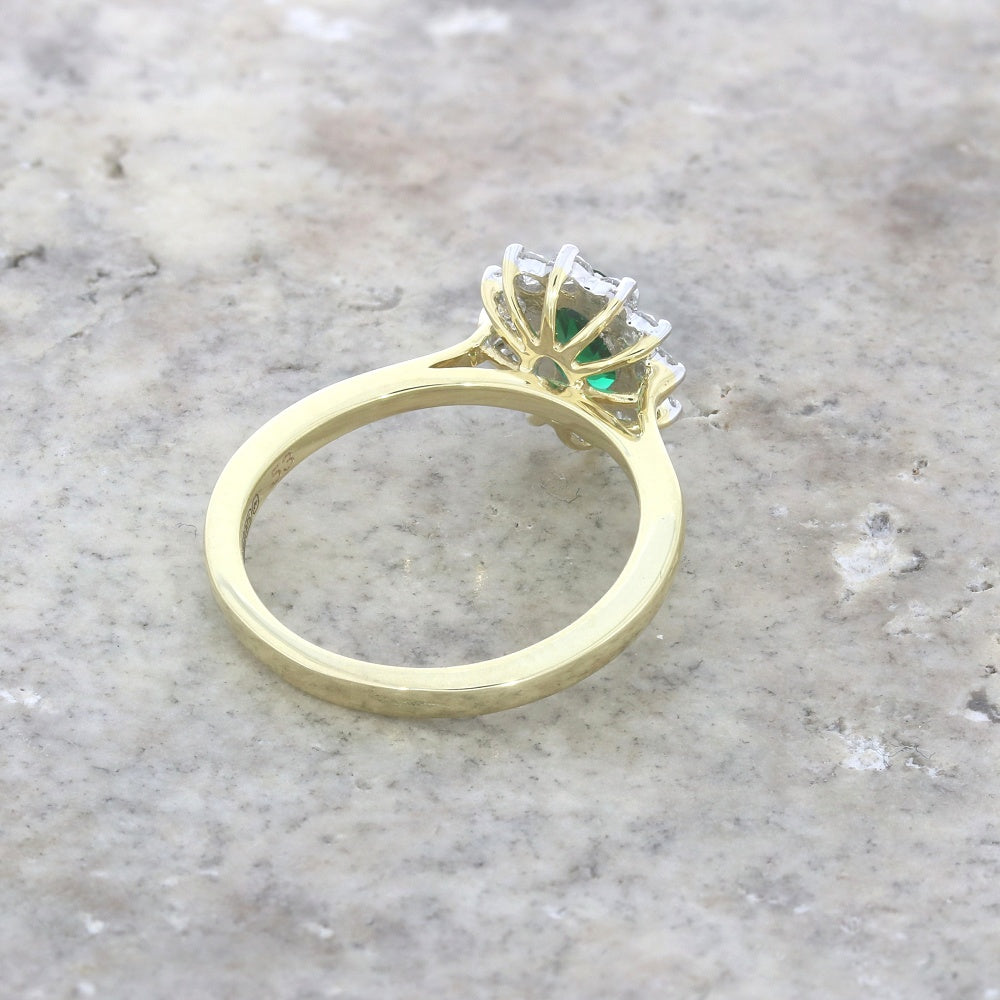 9ct Gold Lab Grown Emerald and Diamond Cluster Ring