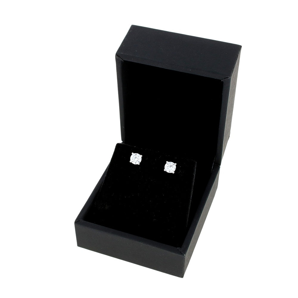 Stunning Lab-grown diamond stud earrings, featuring round brilliant cut lab-created diamonds, in 9ct white gold 4-claw setting, with a post and butterfly fasten. The stem of each earring is stamped with a British Hallmark from the Birmingham Assay Office.