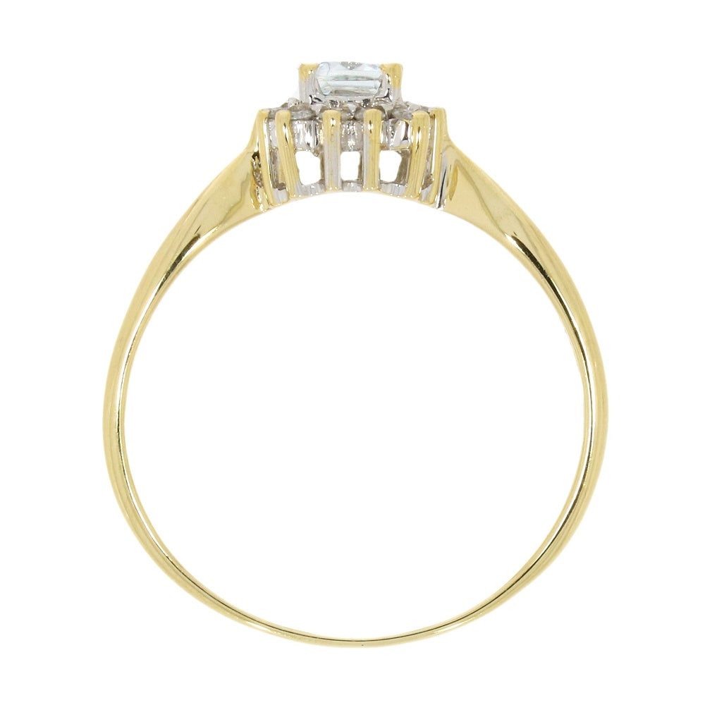 9ct Yellow Gold Aquamarine and Diamond Cluster Ring
