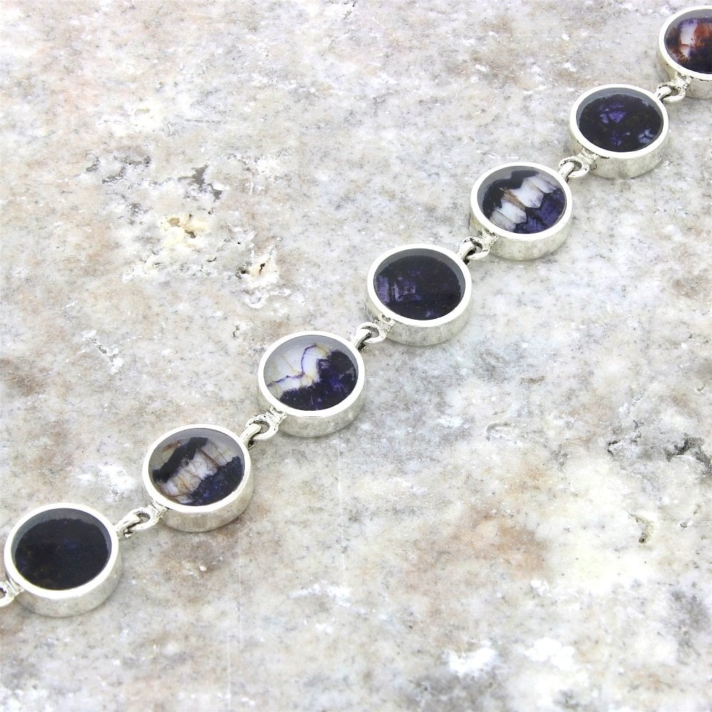 Derbyshire Blue John Sterling Silver Round Link Bracelet