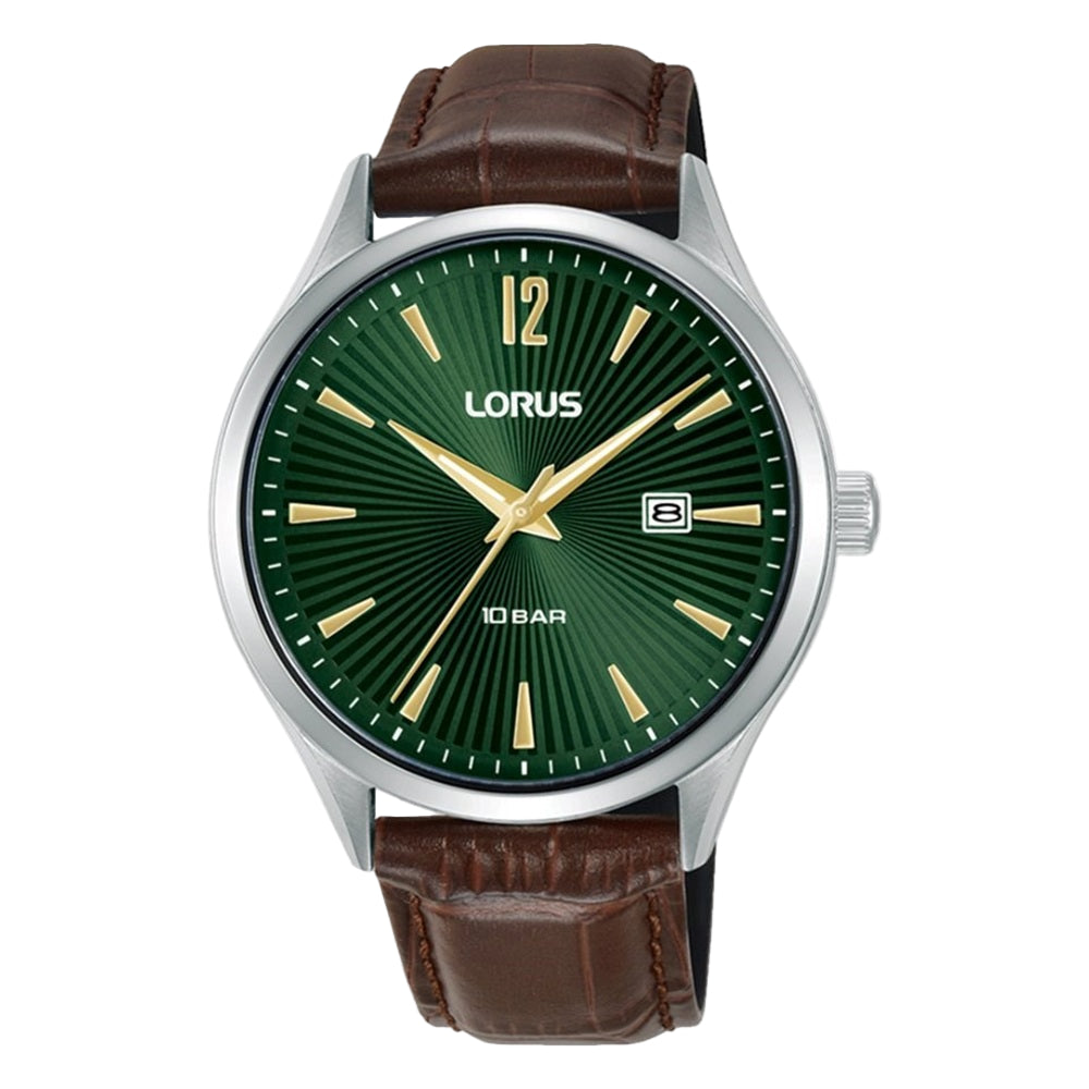 Lorus Green Dial Brown Leather Strap Mens Watch RH995RX9