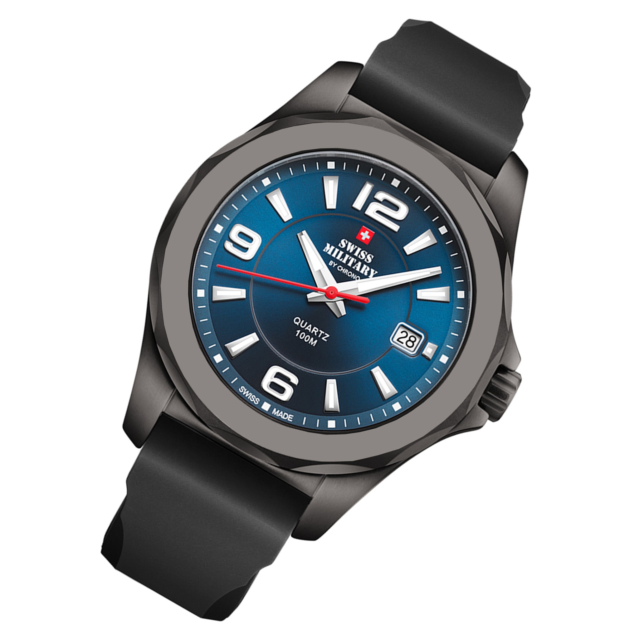 Embrace the superior quality of the Swiss Military Black Rubber Blue Dial Men’s Swiss Made Watch – SM34099.04. Featuring a precise 3-hand quartz movement and a durable stainless steel case with a 42 mm diameter, this watch exudes sophistication and reliability. The mineral glass crystal and vibrant blue dial add a touch of luxury, while the comfortable rubber band in sleek black complements any outfit. With a water resistance of 10 ATM and a secure pin buckle clasp, this watch is perfect for any adventure. Don’t miss out on this must-have timepiece!