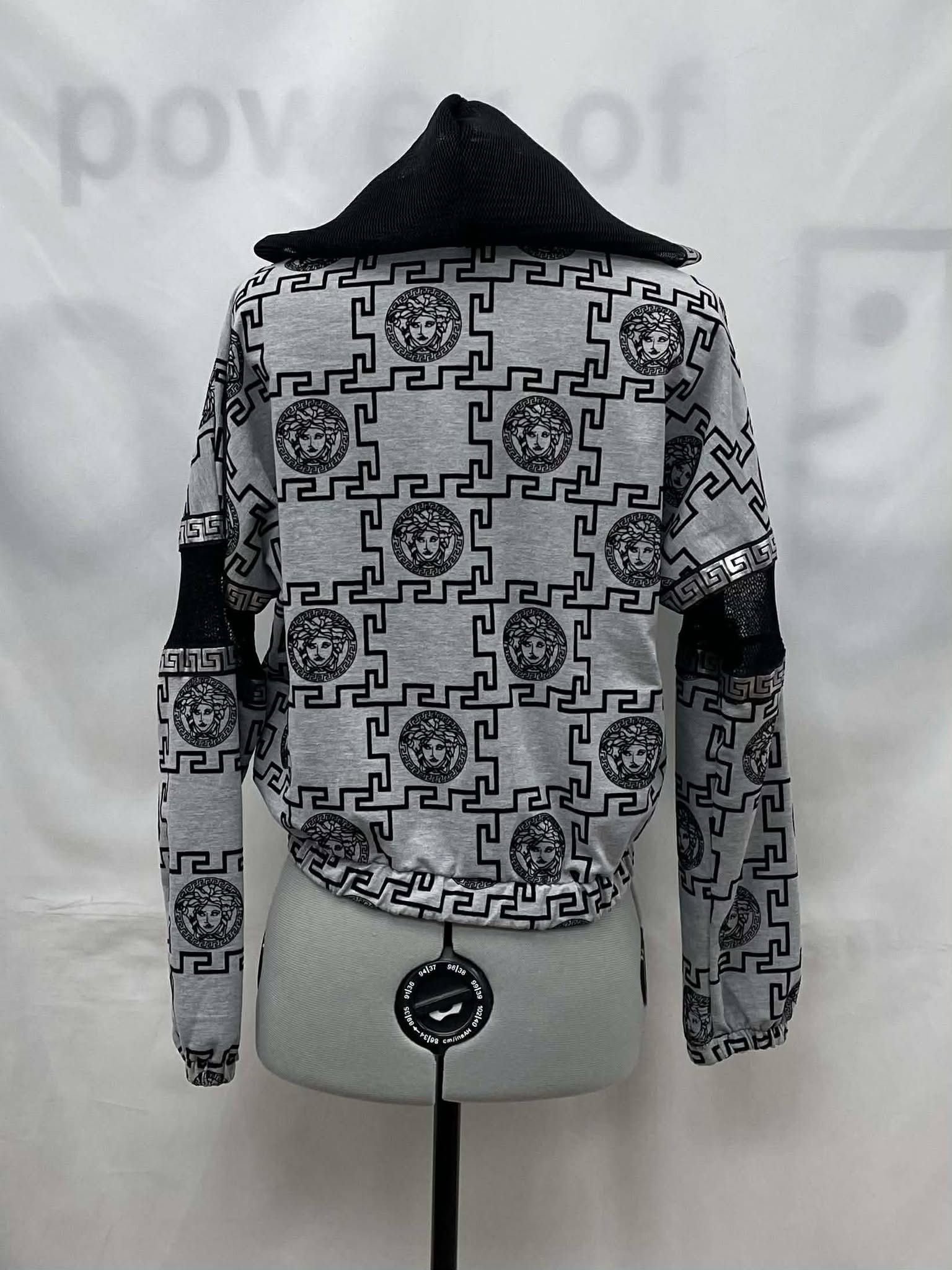 Details: Women’s grey with black mesh, cropped, long sleeve Versace hoodie. ( As Is / Not Authenticated )?